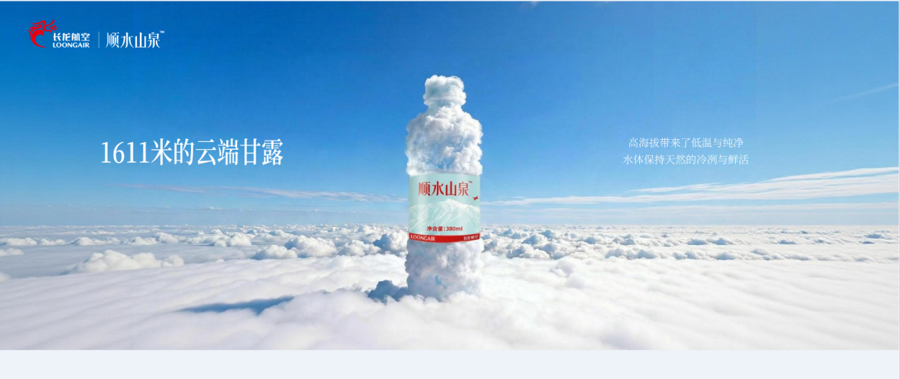 饮顺水 启龙途 长龙航空携手顺水山泉联名推出“云端好水”解锁空中生态新体验