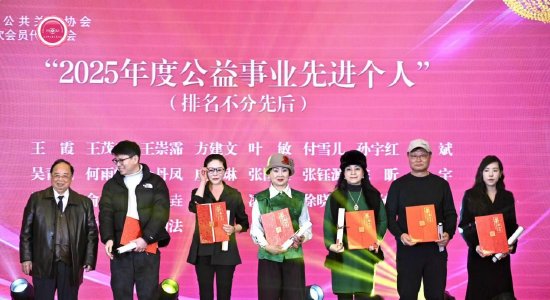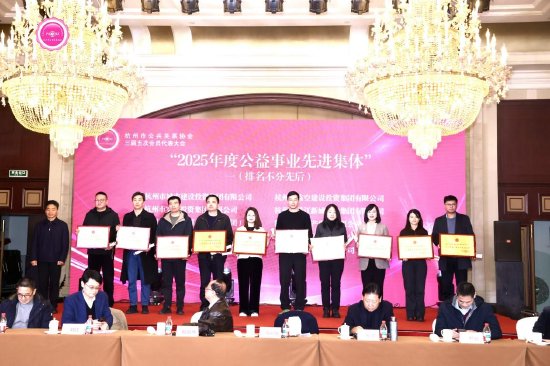 表彰环节熠熠生辉,为大会增添高光时刻。现场,协会驻会副会长、原市规划局党组副书记、副局长黄瑚宣读了“2025年度公益事业突出贡献奖”“2025年度公益事业先进集体”“2025年度先进工作者”“2025年度公益事业先进个人”提名名单。经会议表决通过后,颁奖仪式正式启动。杭州市政协副主席、工商联主席冯仁强为公益事业突出贡献奖、公益事业先进集体获得单位颁奖,浙江省政协原副主席陈昭典为先进工作者、公益事业先进个人颁发荣誉证书,鲜明传递出“争当先锋、笃行向前”的价值导向。