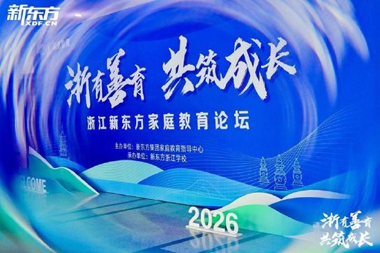 关注共育时代新苗,赋能美好成长。4月25日,“浙有善育·共筑成长”2026年新东方家庭教育论坛在杭举办。本次论坛由新东方教育集团主办、新东方浙江学校承办,汇聚多位国内知名教育专家、资深教育管理者、家校代表,围绕新时代家庭教育之道展开探讨,凝聚家校社协同育人合力。