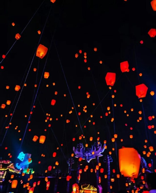 电子孔明灯缓缓升起,千灯齐飞,汇成一片温暖的星空海洋。这一刻,千年古县城见证你的新年心愿。