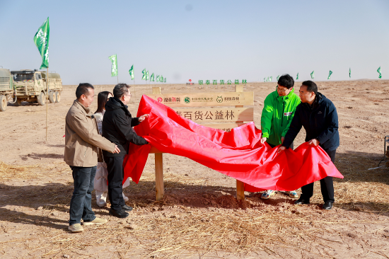 关注拂过荒漠,种下春天。3月6日,2026银泰百货公益林河西春种在甘肃省武威市民勤县正式启动。
