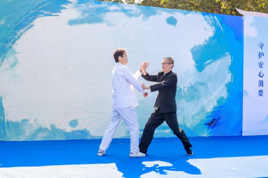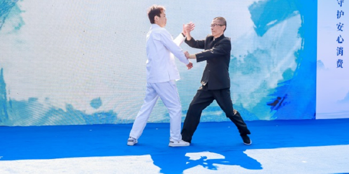 随后,咏春拳传人登台表演量身创编的“消保功夫操”,摊手揭骗局、膀手筑防线、耕手除乱象,刚劲有力的拳法搭配朗朗上口的防骗口诀,让观众看得津津有味。“这样的活动有意思,学上几招,还能记牢防骗技巧,一举两得!”现场年轻观众忍不住跟着比划起来。