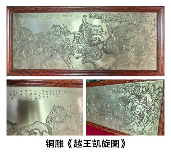 还有家人的支持,让我能安心投入创作,这份温暖也是我坚守的动力。绍兴铜雕工序繁复,每一件作品都需要千锤百炼,我的《兰亭序》耗时12年,一共刻了100多幅,其中刻坏的足足有五十余幅才摘得山花奖,《越王凯旋图》雕刻了三个月,却构思了十余载,对历史题材的巨作,我更是苛求极致。干这行,没有捷径,只有脚踏实地,用心握好每一把工具,用心做好每一次敲打,用心雕好每一个细节,这就是我理解的匠心。