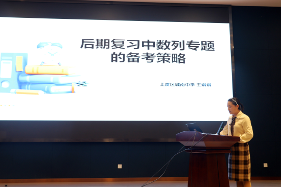 而后,来自上虞城南中学的王娟娟老师作了《后期复习中数列专题的备考策略》的报告,她系统梳理了高考中常见的数列常见模型与解题规范,特别是新高考中数列与三角、导数、不等式的交汇问题。