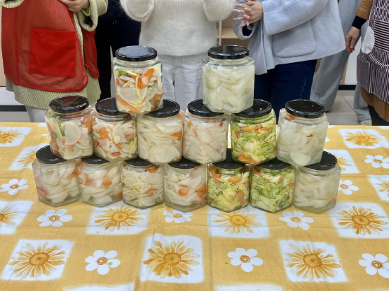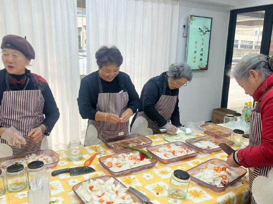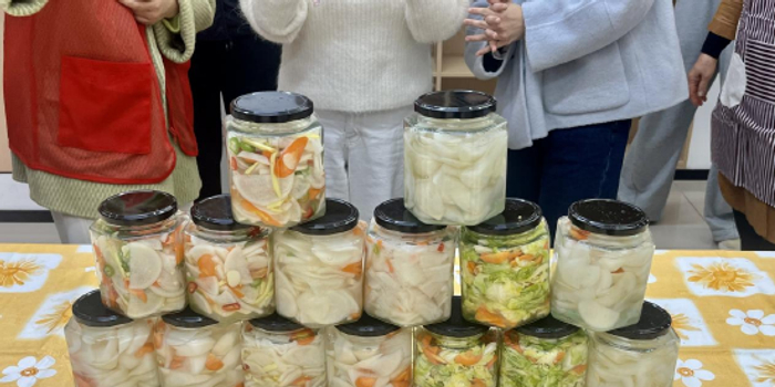 理论学习之后,便是充满趣味的实践环节。志愿者们和银龄居民们一起动手腌制萝卜条。大家分工明确,有的负责切条,有的调配腌料,忙得不亦乐乎。在欢声笑语中,一个个装满萝卜条的“冬至风味瓶”诞生了。这些小小的瓶子,不仅承载着冬日的味道,更蕴含着浓浓的温情。此次活动,台州银行天长南路支行联合社区妇联将“应时而食”的理念巧妙转化为家庭实践,让老人们在体验传统习俗的同时,也学到了实用的养生知识。