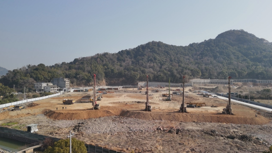 关注这几天,在位于院桥镇鸡笼山下的鉴洋湖宋韵水街(一期)项目现场,打桩机、挖土机、灌浆机等各类工程机械运作的声音不绝于耳,桩基施工、护坡浇筑、土地平整作业等环节都在有条不紊推进中,项目整体轮廓加速显现。