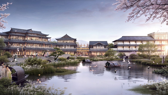项目由台州市黄岩鉴洋湖旅游发展有限公司负责建设,总投资约14.6亿元,总用地面积约14.7万平方米,总建筑面积约12.1万平方米。“目标是将整个项目打造成全域沉浸式体验的南宋美学文旅度假休闲商业步行水街。” 鉴洋湖旅游发展有限公司总经理陈智威向记者介绍。