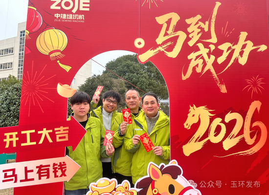 2月26日,农历正月初十,清晨的浙江中捷缝纫科技有限公司厂区,一扫春节假期的宁静,厂区门口彩旗迎风招展,广场中央威风鼓队已准备就绪,两头瑞狮精神抖擞地等待着。这一天,是“中捷人”返回“大家庭”的日子,一场以“马年开门红”为主题的2026年开工仪式在这里温情上演。
