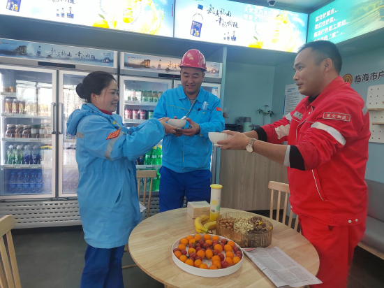 常年跑长途的货运司机王师傅捧着热饺,脸上满是感动:“每年除夕都在路上奔波,没想到今年能在驿站吃上热乎饺子,还有这么多零食茶水,就像在自家过年一样暖心。” 对于坚守在能源保供一线的油罐车司机而言,这份关怀更显珍贵。临海双林南路驿站工作人员专门为他们送上定制祝福,感谢他们在节日期间为保障油料供应的默默坚守,让这群“能源摆渡人”在奔波中感受到专属温暖。