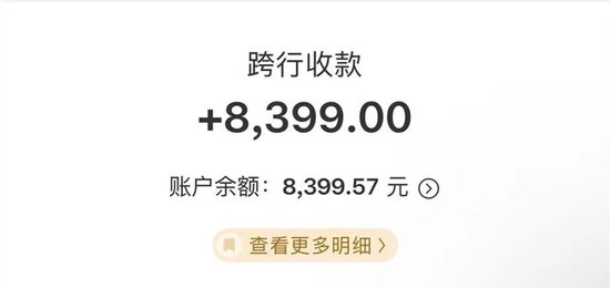 3月21日,邓某的手机收到银行到账提醒——8399元全额退回。