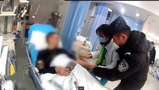 为争取救治时间,队员们当机立断:“上车,我们送你去医院!”随即将群众小心搀扶上警车,警灯闪烁、一路疾驰,为生命开辟绿色通道。