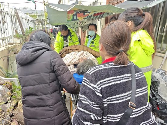 抵达小区后,民辅警迅速找到监控中显示的楼道,逐层排查。当走到某一层楼梯口时,他们终于发现了老人——只见老人蜷缩着躺在冰冷的楼梯口,神情疲惫,身上也沾了些许灰尘。“阿婆,醒醒,你没事吧,有没有哪里不舒服?”民辅警立刻上前,轻声安抚老人的情绪,仔细查看老人的身体状况,确认老人暂无大碍后,小心翼翼地将老人扶起。