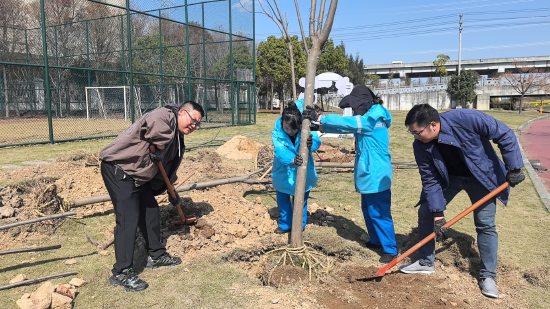 植树现场,一派热火朝天的劳动景象。同志们热情高涨,分工有序,默契协作:挥锹挖坑、扶正树苗、培土固根、提桶浇水……每一个环节都一丝不苟,井然有序。大家顾不上裤脚的泥土与额角的汗珠,全心投入。经过一番辛勤劳作,一株株新苗稳稳植根于土壤,在春风中焕发出勃勃生机。此次活动以实际行动践行了“绿水青山就是金山银山”的发展理念,切实履行了植树造林的社会责任,为美化共同家园增添了一抹动人的新绿。