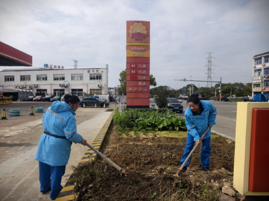 在温岭光明加油站的站前空地,往日杂草丛生的边角地带,如今已是一派繁忙的劳动景象。身着蓝色工装的加油站员工们手持锄头、铁锹,分工协作、干劲十足。有的弯腰清理杂草石块,有的挥锹翻松土壤,有的细致平整地块,每一个动作都一丝不苟。尽管尘土沾衣,大家的脸上却洋溢着劳动的喜悦,原本荒芜的闲置地,在众人的努力下逐渐焕发出新的生机。